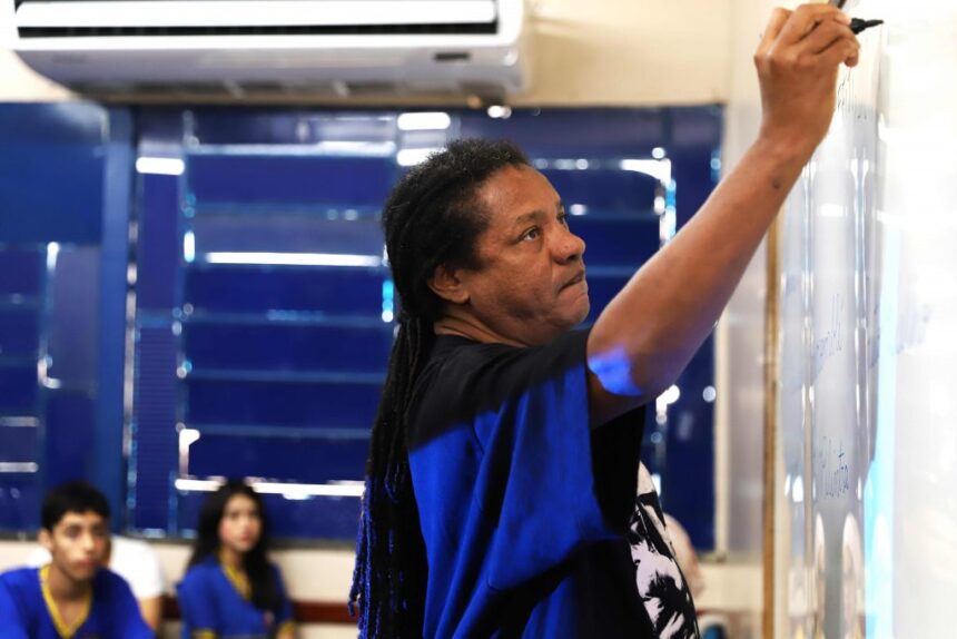 A Escola Estadual (EE) Senador Antóvila Mourão Vieira, localizada na zona sul de Manaus, foi a unidade de ensino contemplada pela iniciativa na tarde de segunda-feira (18/03). Em debate, temas como racismo estrutural, elaboração de políticas públicas para povos marginalizados e como a música e a cultura abordam essa problemática foram citados pelo ativista social e estudante de pedagogia, Lamartine Silva.
